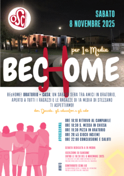 Scarica il PDF con le informazioni sulla catechesi 2025/2026 1 – PREPARA I DOCUMENTI A partire da venerdì 26 settembre compilate l’iscrizione online. Andate sul sito dell’oratorio www.oratoriostezzano.it e cliccate sul link nella pagina principale. Al termine della compilazione, stampate e firmate il modulo. Recuperate una fototessera (anche una foto… > continua